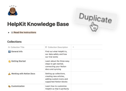 Step 3: Publish (HelpKit) - HelpKit connects directly to your Notion workspace and syncs your documentation. It transforms your internal Notion database into a professional, branded knowledge base with: